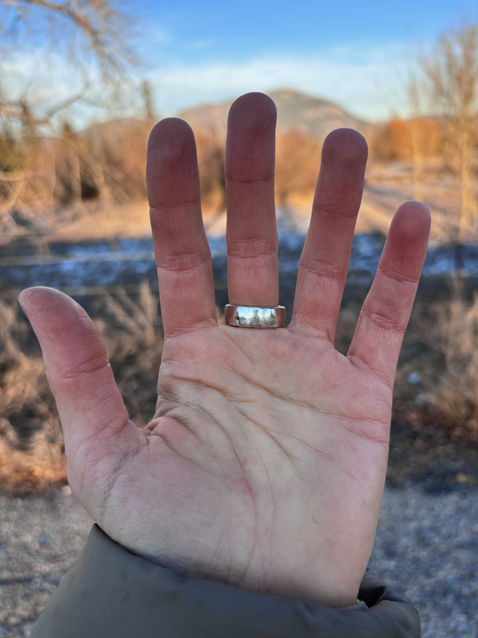 This ring is made through a special method of metalsmithing known as sand casting. A wax mold of the ring was hand carved by me, then placed in sand, removed, and the remaining form was filled with liquid hot sterling silver. The end result is a thick, chunky piece that has no solder joints, and is truly going to stand the test of time.