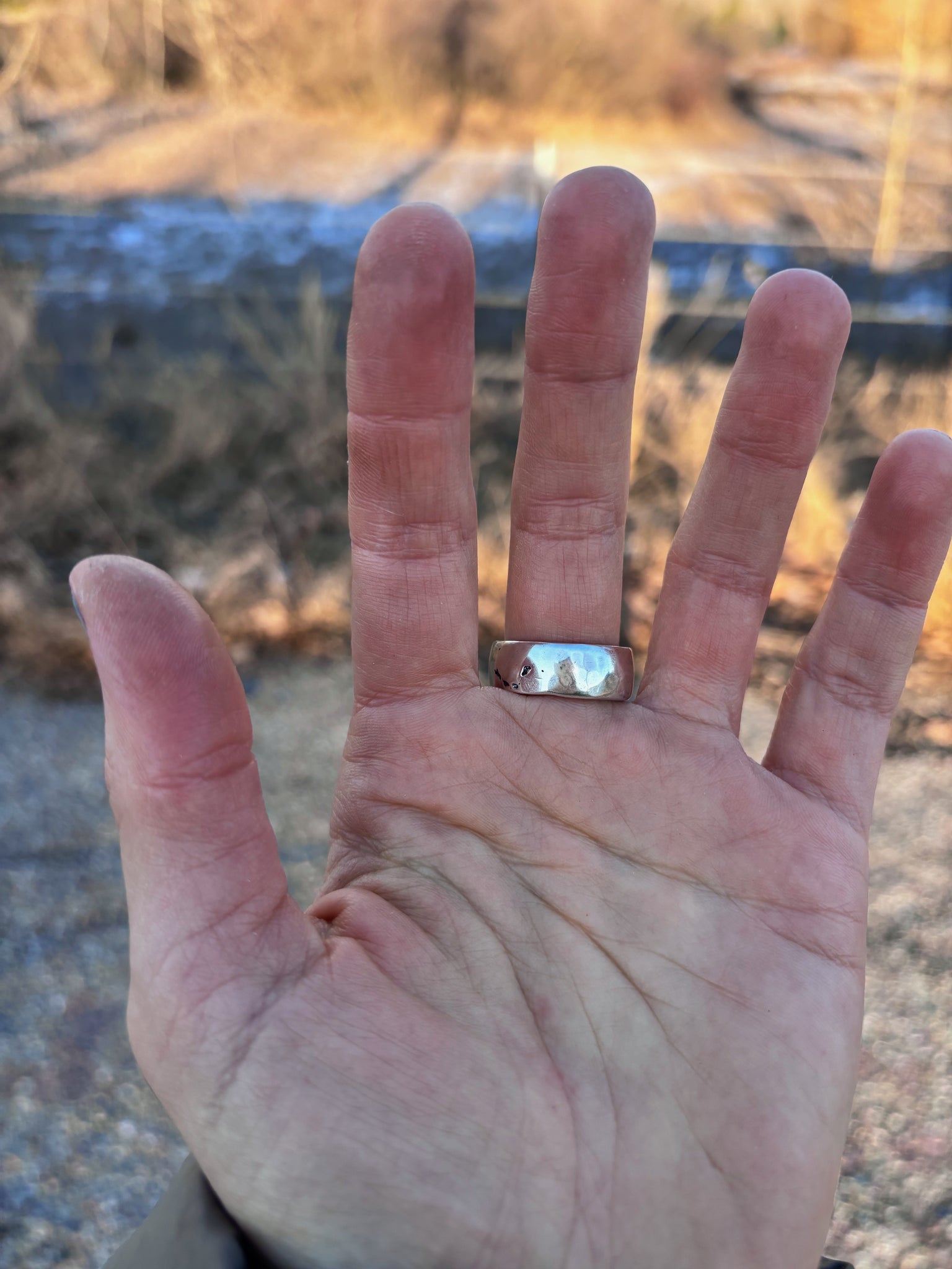 This ring is made through a special method of metalsmithing known as sand casting. A wax mold of the ring was hand carved by me, then placed in sand, removed, and the remaining form was filled with liquid hot sterling silver. The end result is a thick, chunky piece that has no solder joints, and is truly going to stand the test of time.