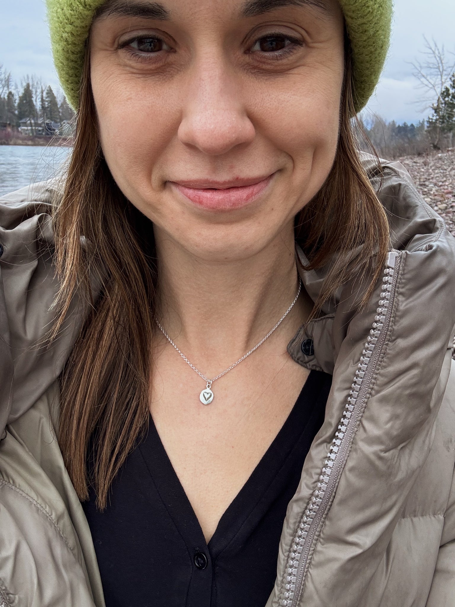 This reclaimed silver heart necklace is really a unique and special piece. It began as a recycled ball of sterling silver, before getting hammered into a heart form. The outer edges of the pendant have a somewhat organic look- no two the same.