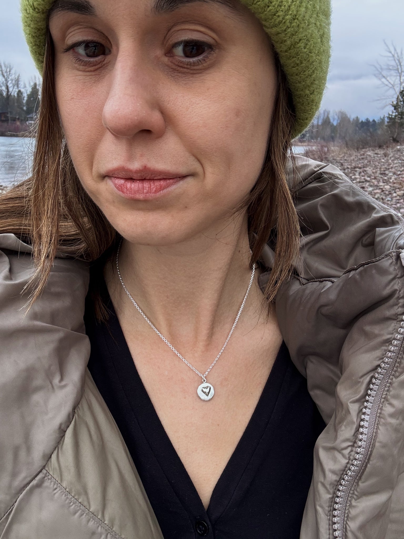 This reclaimed silver heart necklace is really a unique and special piece. It began as a recycled ball of sterling silver, before getting hammered into a heart form. The outer edges of the pendant have a somewhat organic look- no two the same.