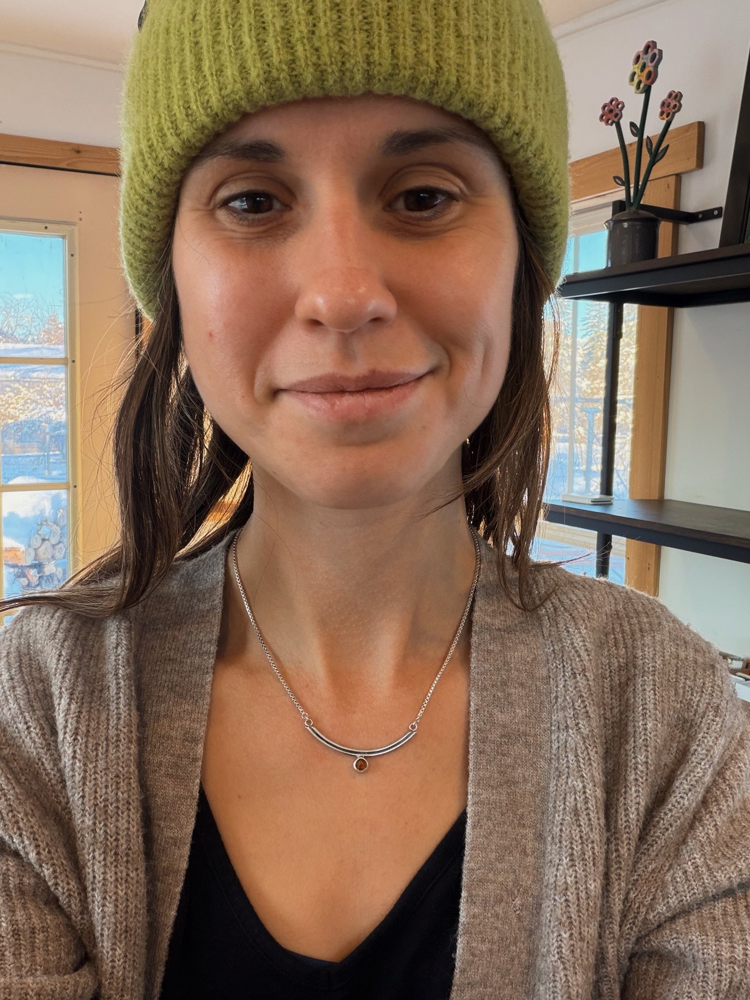 This bow necklace is made from a two sterling silver wires and there is a light patina on this piece to make the details pop.