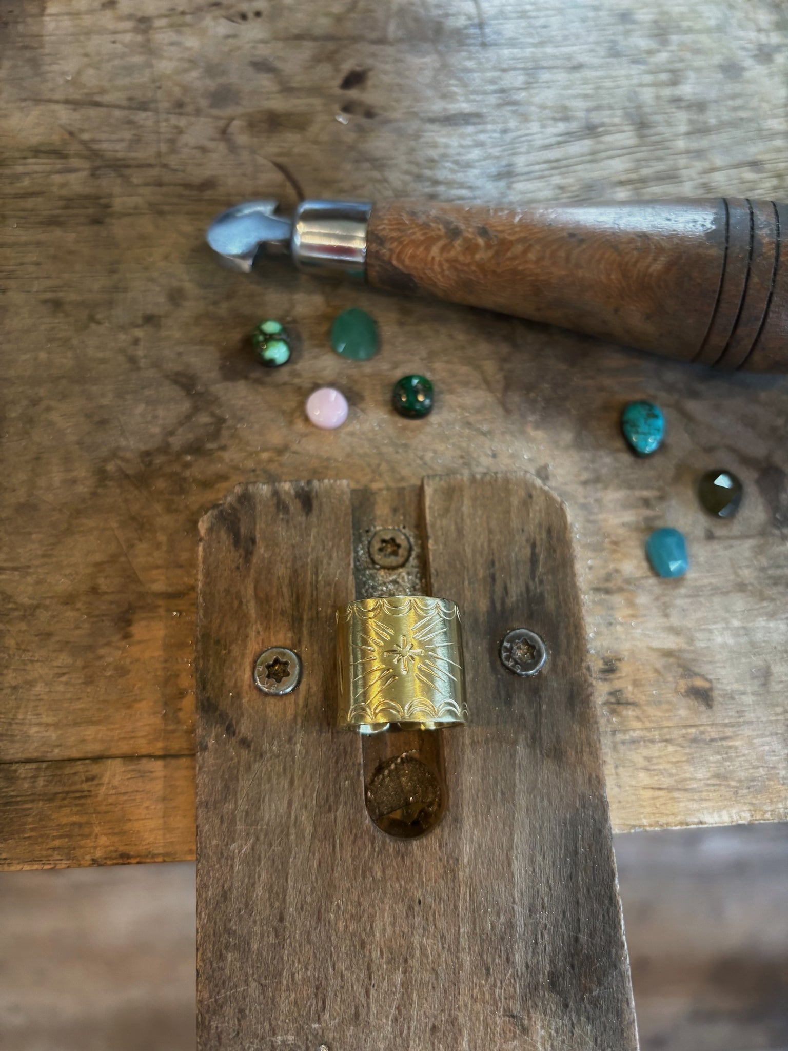 My newest collection of bandana slides are bound to be your go-to accessory. I am falling more in love with wearing scarves and bandanas everyday, but I haven't quite perfected the knot. This slide is easy to use and will not fall off. It's made from brass and features hand stamped star and moon accents. The slide measures 3/4 an inch tall.
