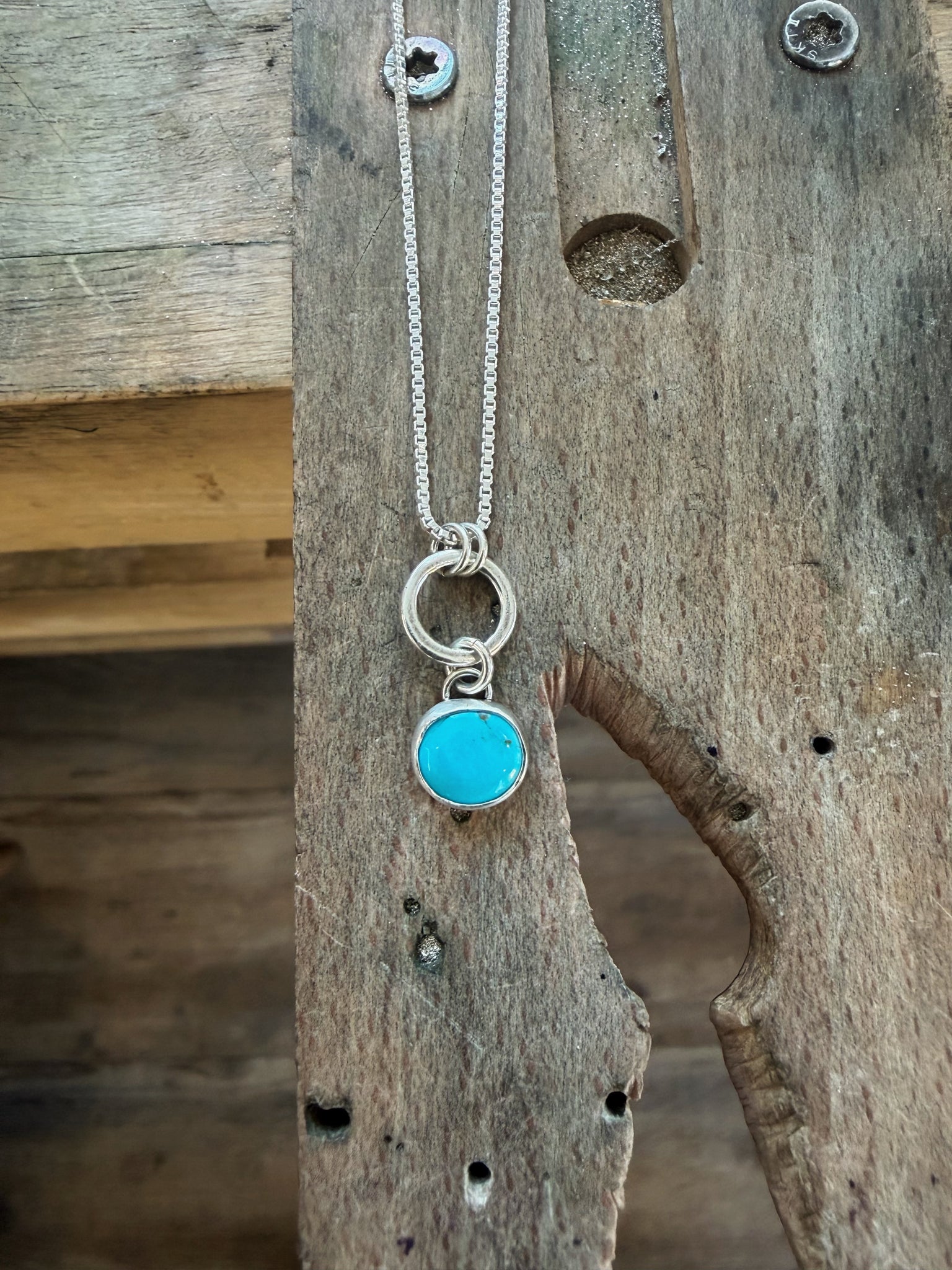 The necklace pairs a minimalist design with a stunning bright blue Sleeping Beauty Turquoise stone.