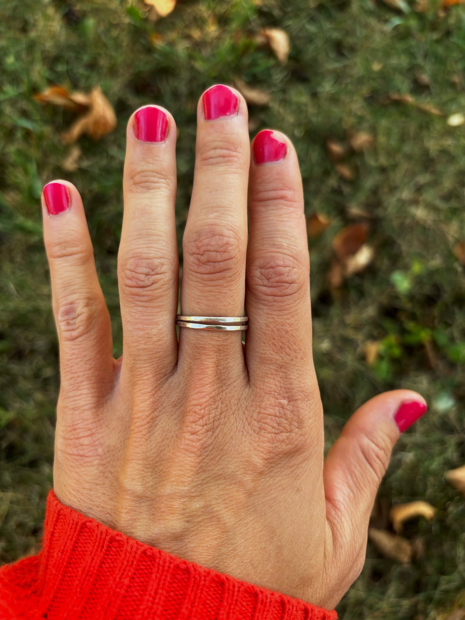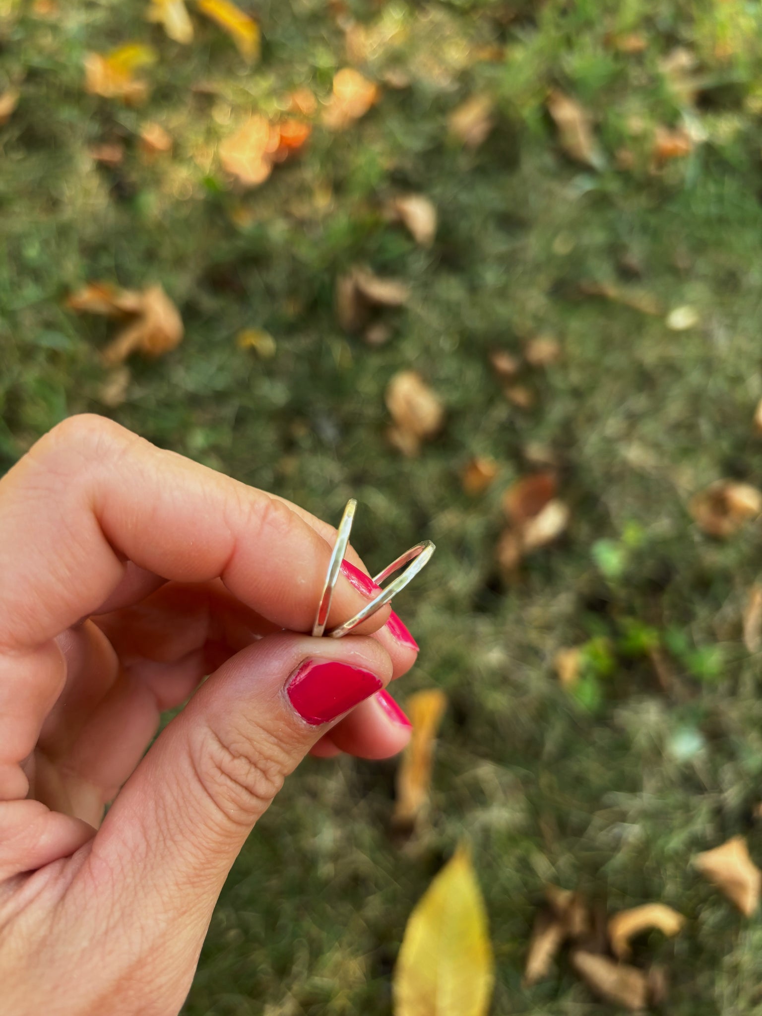 Simple, sturdy, and perfect for all of your adventures. This minimalist set features two petite sterling silver stacking bands. They are size 7.25 and fit true to size. Great for adding to other rings or wearing alone!